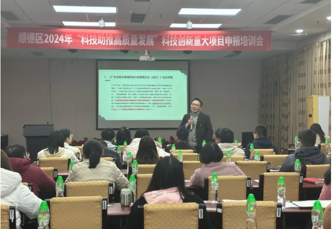 培训会开始前,顺德区科学技术局领导首先致辞:近年来,顺德本土企业申报相关项目及应对评估工作均取得了比较理想的成绩,培训会的举办也得到了政府及企业的高度认可。2024年,为贯彻广东省高质量发展大会精神,区科技局会继续充分发挥引导作用,为顺德区企业申报相关科技项目提供专业化辅导和培训,让更多有能力的企业、有技术含量的项目顺利申报,进一步激励企业不断创新,为顺德区实现跨越性发展提供强大支撑和不竭动力。